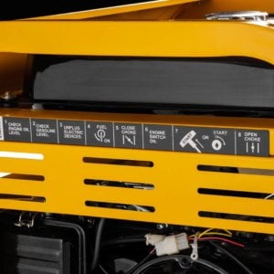 Der Benzinmotor kann bequem über einen E-Starter (oder Handstarter) gestartet werden. Das Fassungsvermögen vom Tank beträgt 25 Liter. Die Füllmenge kann bequem über die Füllstandsanzeige abgelesen werden. Der große Tank führt zu langen Laufzeiten.