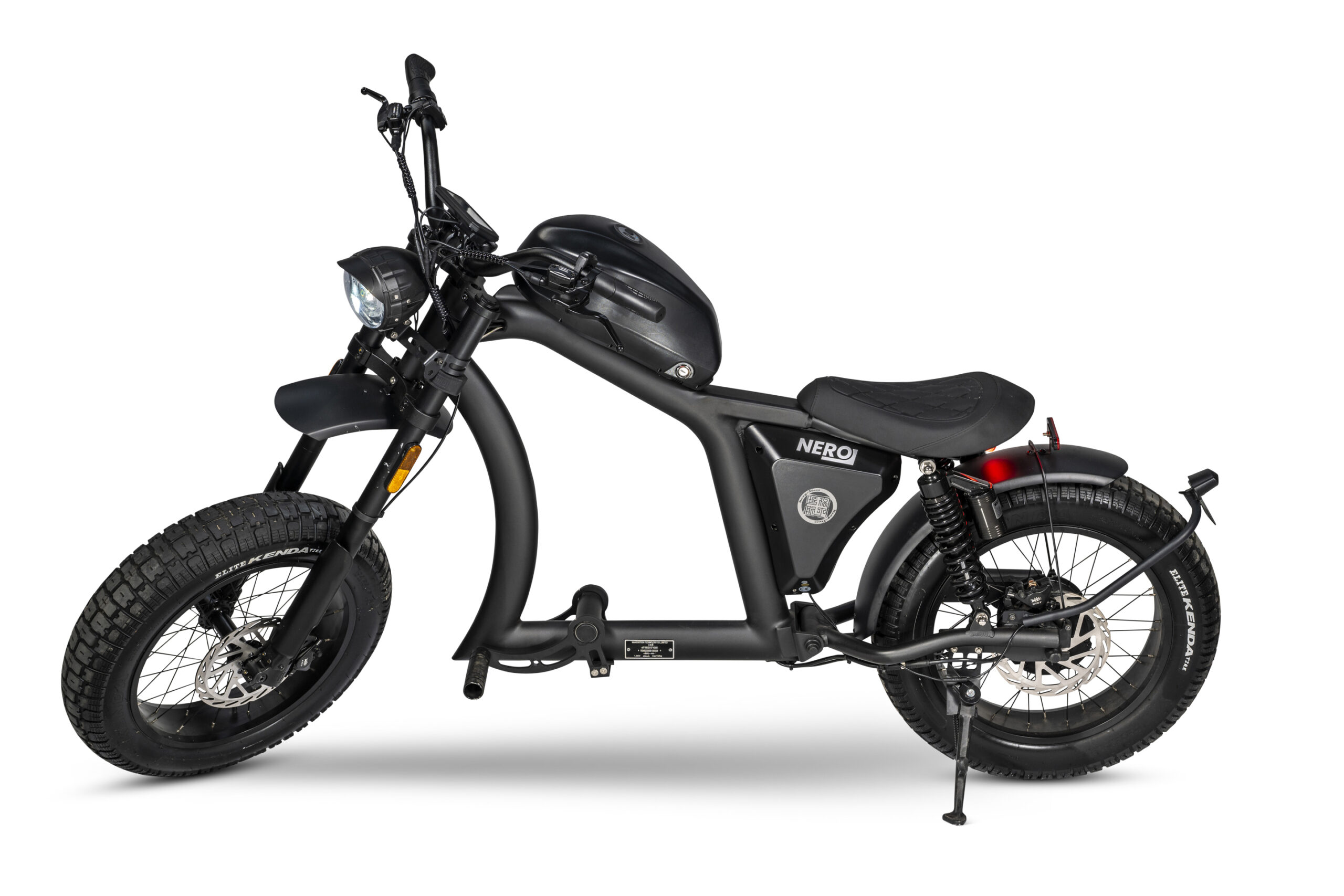 Dieser mattschwarze Chopper ist mehr als nur ein Fahrzeug – der Nero Hawk bringt dir Fahrspaß, Freiheit und Style, und das komplett elektrisch und emissionsfrei. Mit fetten Reifen, tiefem Sitz und einem Look, der an Fatbikes erinnert, zieht er außerdem alle Blicke auf sich. Du brauchst nur einen AM- oder B-Führerschein und kannst direkt loslegen. Der Typenschein ist dabei – anmelden, aufladen, losfahren.