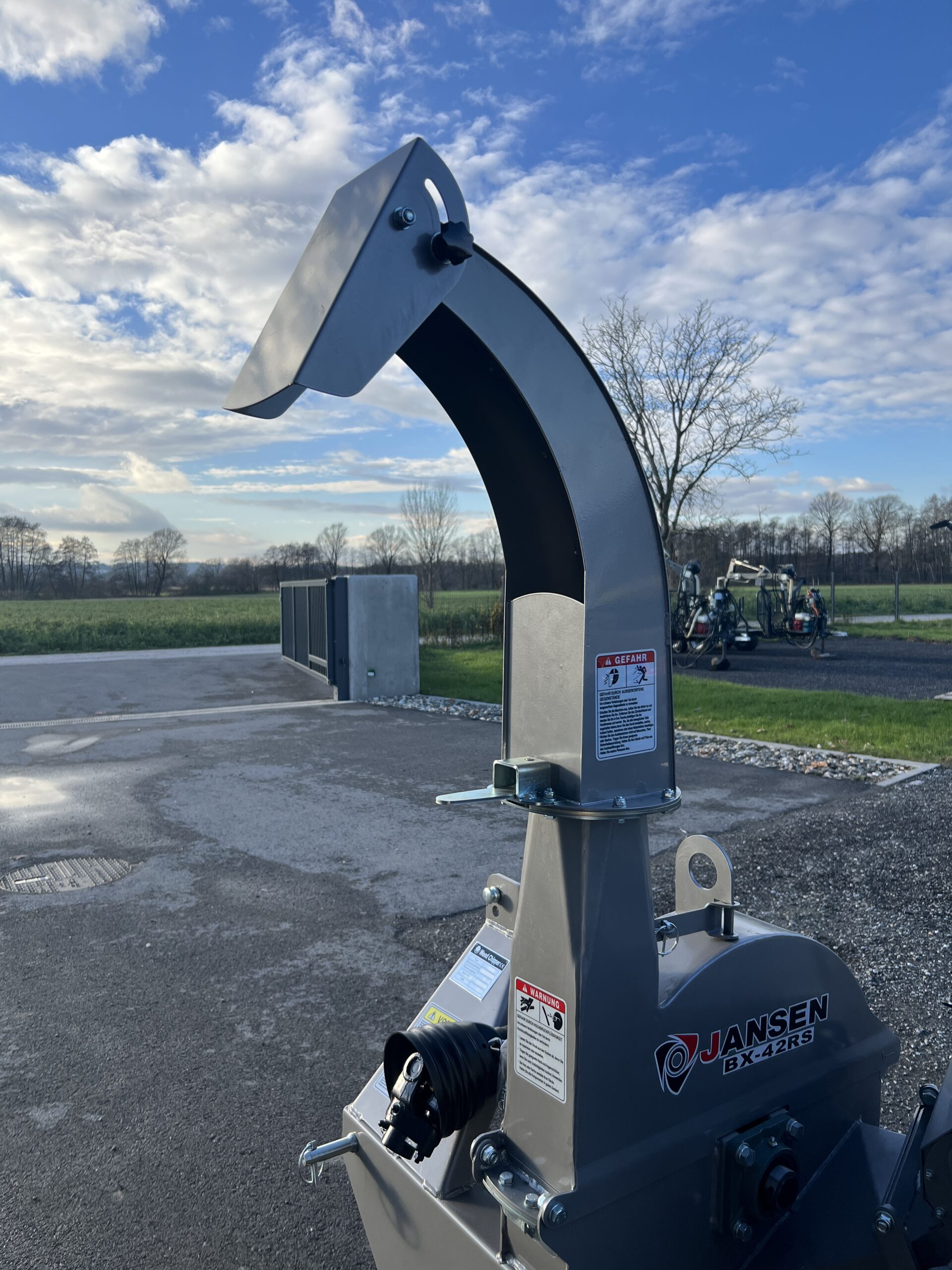 Der BX‑42RS ist ein leistungsstarker Häcksler für kleine bis mittlere Traktoren. Er zerkleinert Äste und Gehölz zuverlässig und wird über die Zapfwelle des Traktors angetrieben.