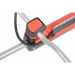 Das 3-Zahn-Messer hat einen Schnittkreis von 25,5 cm und ist ein kraftvoller Helfer beim Kampf gegen starken Bewuchs. Das 2-Faden-Schneidsystem der Motorsense hat eine Auftipp-Automatik mit einem Schnittkreis von 43 cm mit der die Fadenverlängerung gesteuert wird. Durch das Auftippen der Motorsense wird die Fadennachführung des 2,4 mm starken Mähfadens ausgelöst.