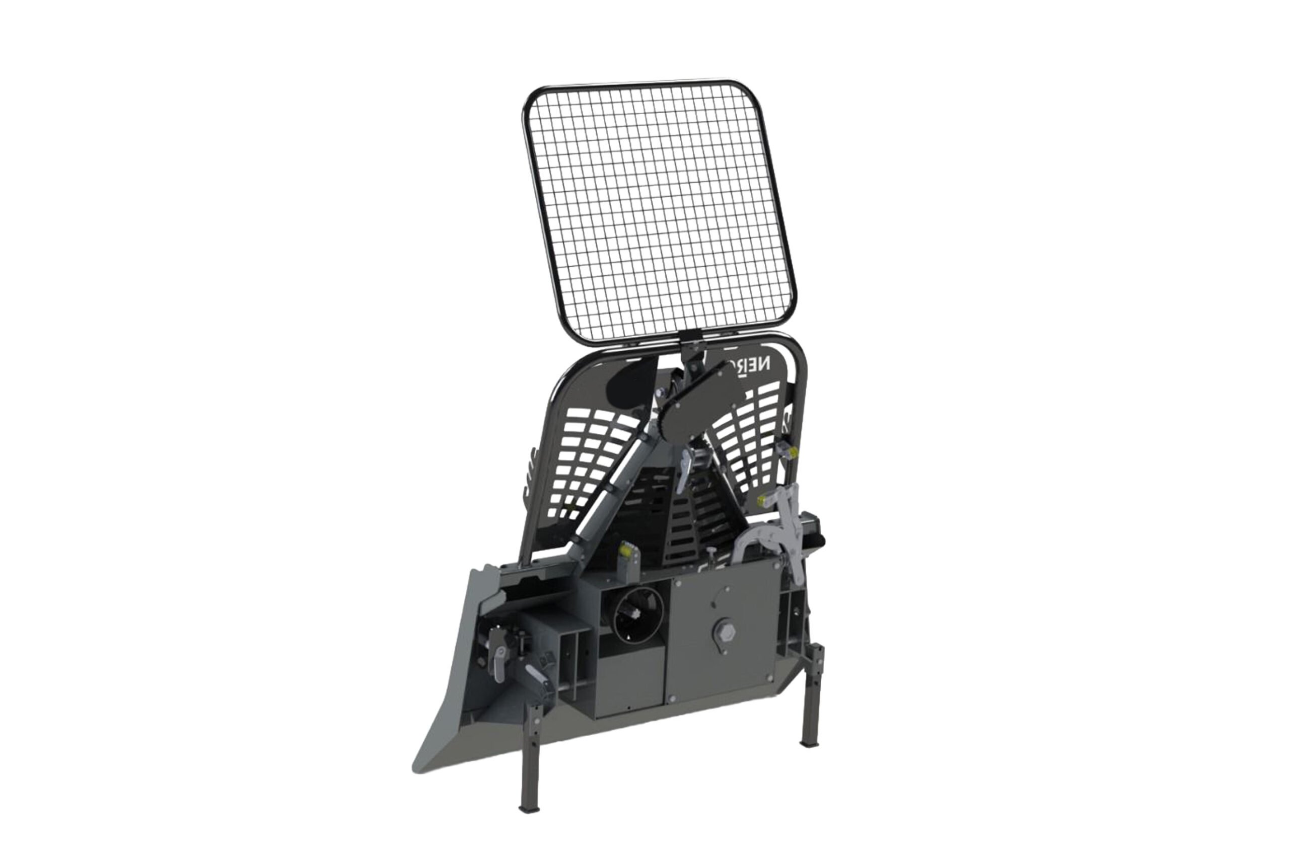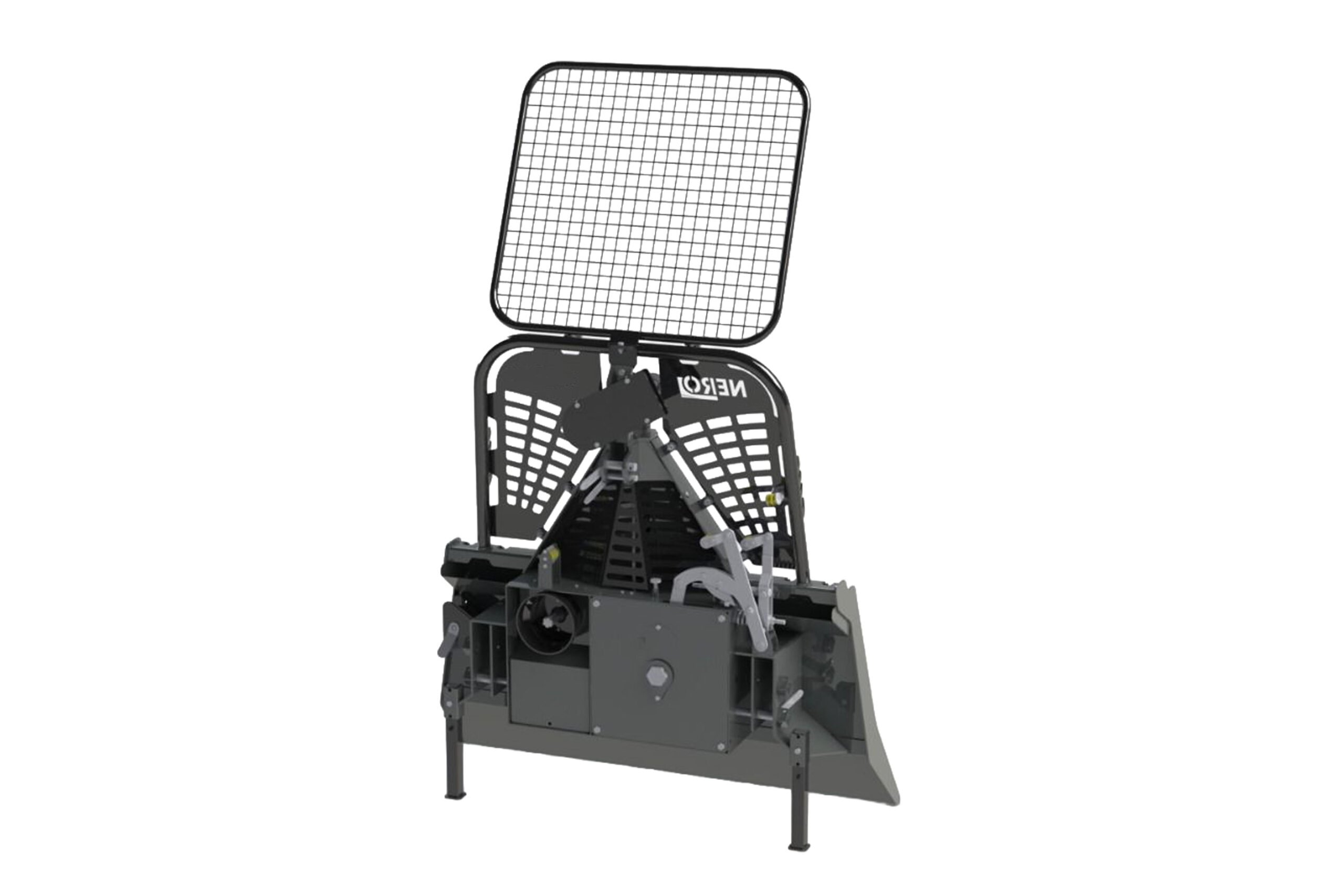 Mit einer Schildbreite von 142 cm, einer Tiefe von 53 cm und einer Höhe von 225 cm inklusive Schutzgitter ist die Nero X-45M kompakt genug für den Einsatz in engen Forstlagen, bietet aber gleichzeitig ausreichend Schutz für den Bediener. Serienmäßig gehören untere Seileinlaufrolle, Anhängevorrichtung und Motorsägen-Halterung zur Ausstattung.